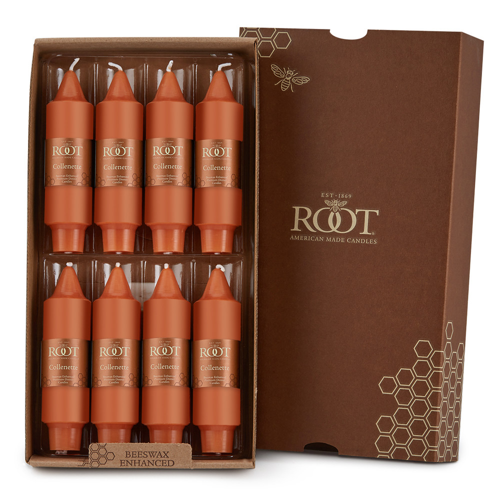 Root's acclaimed beeswax enhanced dinner candles are offered in a variety of year-round designer, on-trend colors and several rotating seasonal colors perfect for the Spring, Fall, and Holiday seasons.