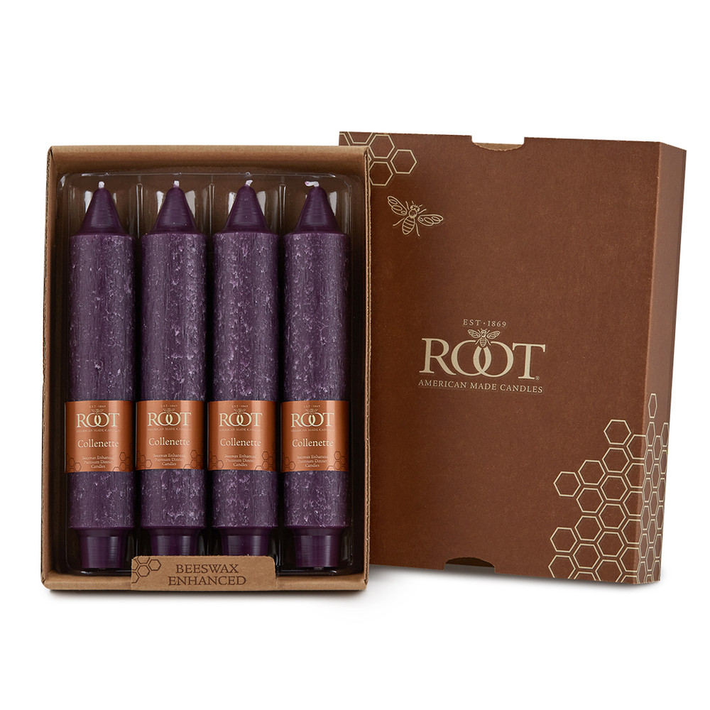 Root's acclaimed beeswax enhanced dinner candles are offered in a variety of year-round designer, on-trend colors and several rotating seasonal colors perfect for the Spring, Fall, and Holiday seasons.